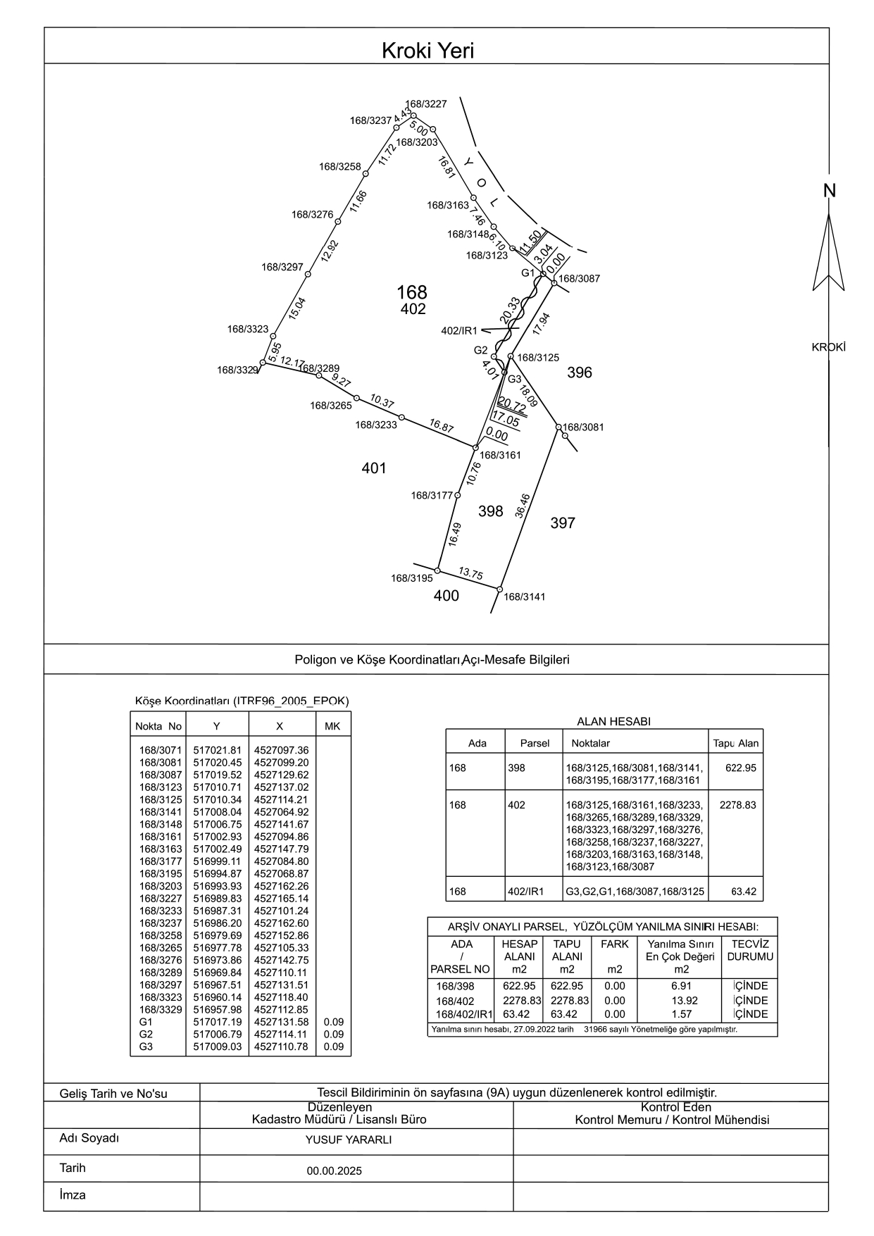 2. İrtifak hakkı güzergâhını belirten projenin istenmesi veya irtifak hakkı güzergâhının ilgililerince zeminde işaretlenmiş olması zorunludur, (Lehine ve aleyhine irtifak hakkı tesis edilecek taşınmaz malın maliklerinin talep anında hangi parsel lehine, hangi parsel aleyhine irtifak hakkı tesis edileceğini açıkça belirtmeleri zorunludur.)